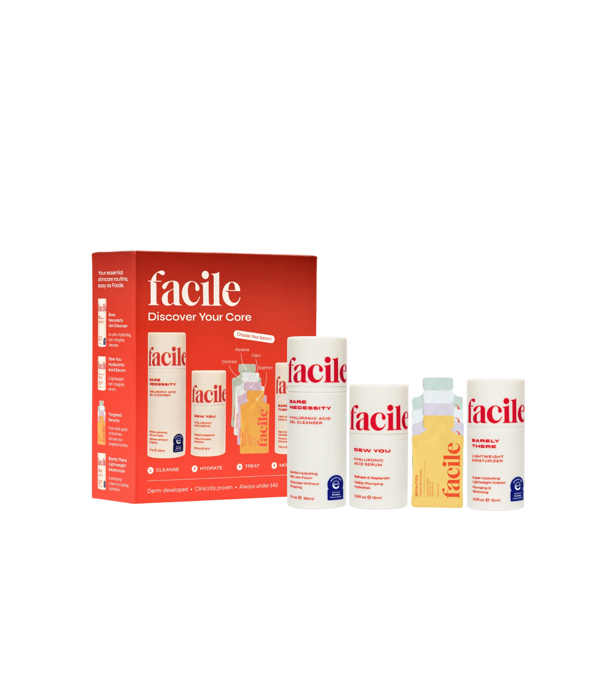 An introduction to the Core Four: three mini daily essentials in mini, plus samples of all four targeted serums.